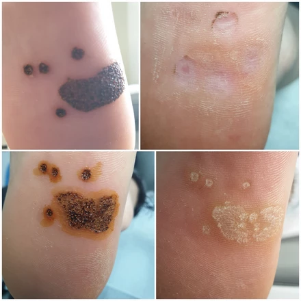 Zabieg polega na ich mechanicznym i/lub chemicznym usunięciu oraz zastosowaniu odciążeń i ortez. Po pierwszym zabiegu następuje poprawa mobilności oraz wyeliminowane dolegliwości pieczenia skóry. Należy pamiętać o systematyczności zabiegów leczniczych.